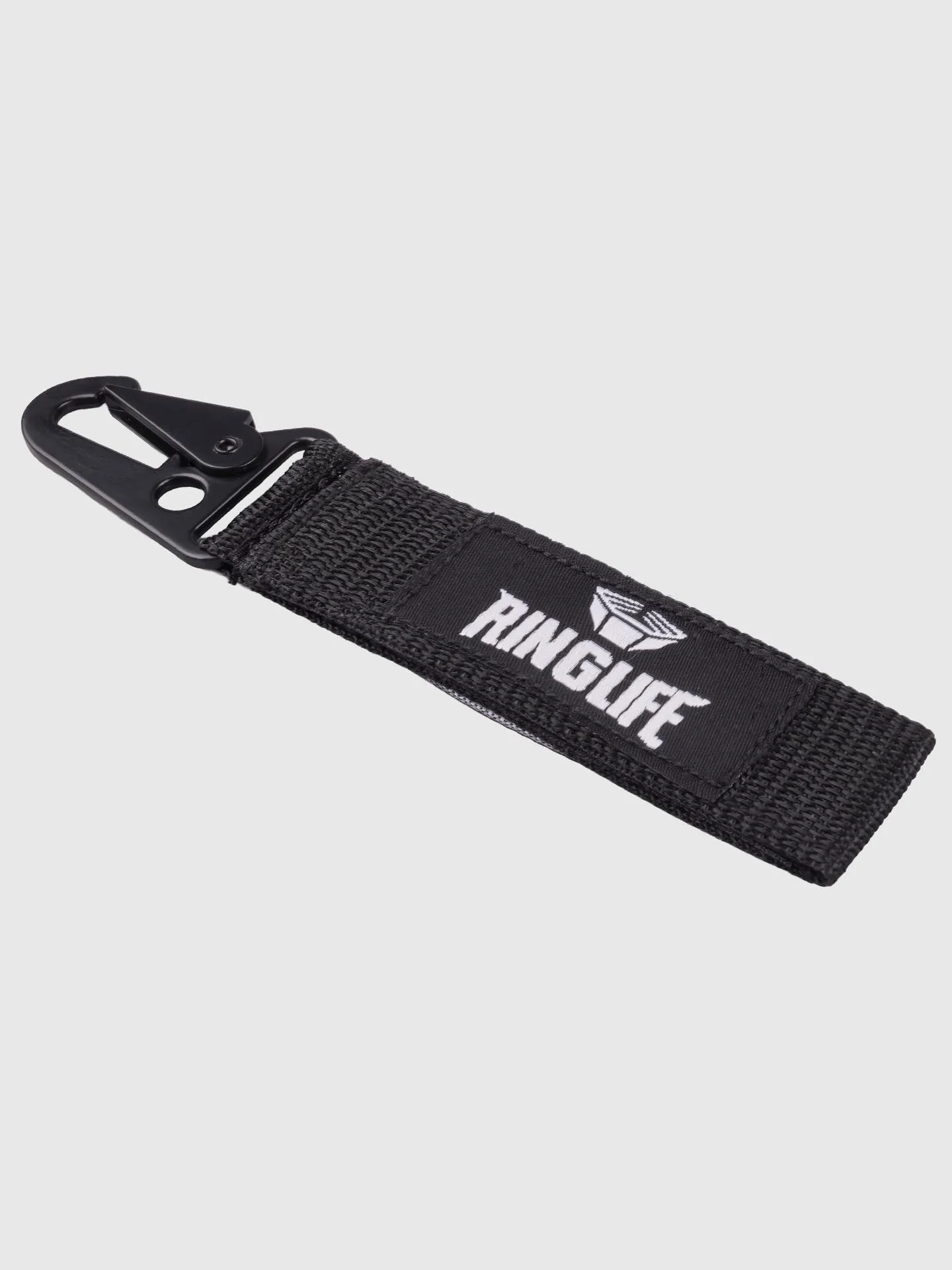 Trage unser Statement bei dir! Der schwarze RINGLIFE Schlüsselanhänger kombiniert robustes Design mit unserem Motto: "From Nothing to Everything". Aus widerstandsfähigem Gurtmaterial gefertigt und mit stabilem Karabinerhaken ausgestattet, ist er perfekt für Schlüssel, Sporttaschen oder als stylisches Accessoire im Alltag.